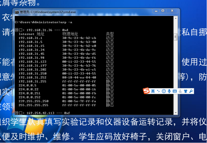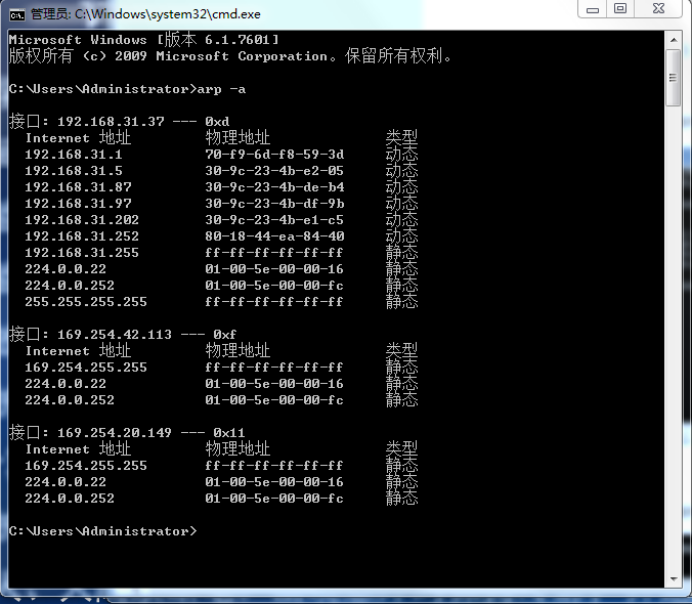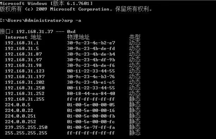 ARP欺骗前192.168.31.37机正常缓存表(实验中的IP可能和本IP不一样)