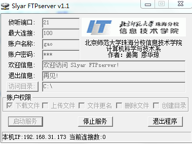 两个同学配合完成,A同学搭建FTP服务器,并新建用户,并设置登陆密码