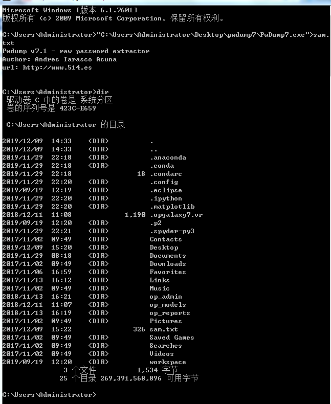 2.使用pwdump软件导出本机的sam文件
