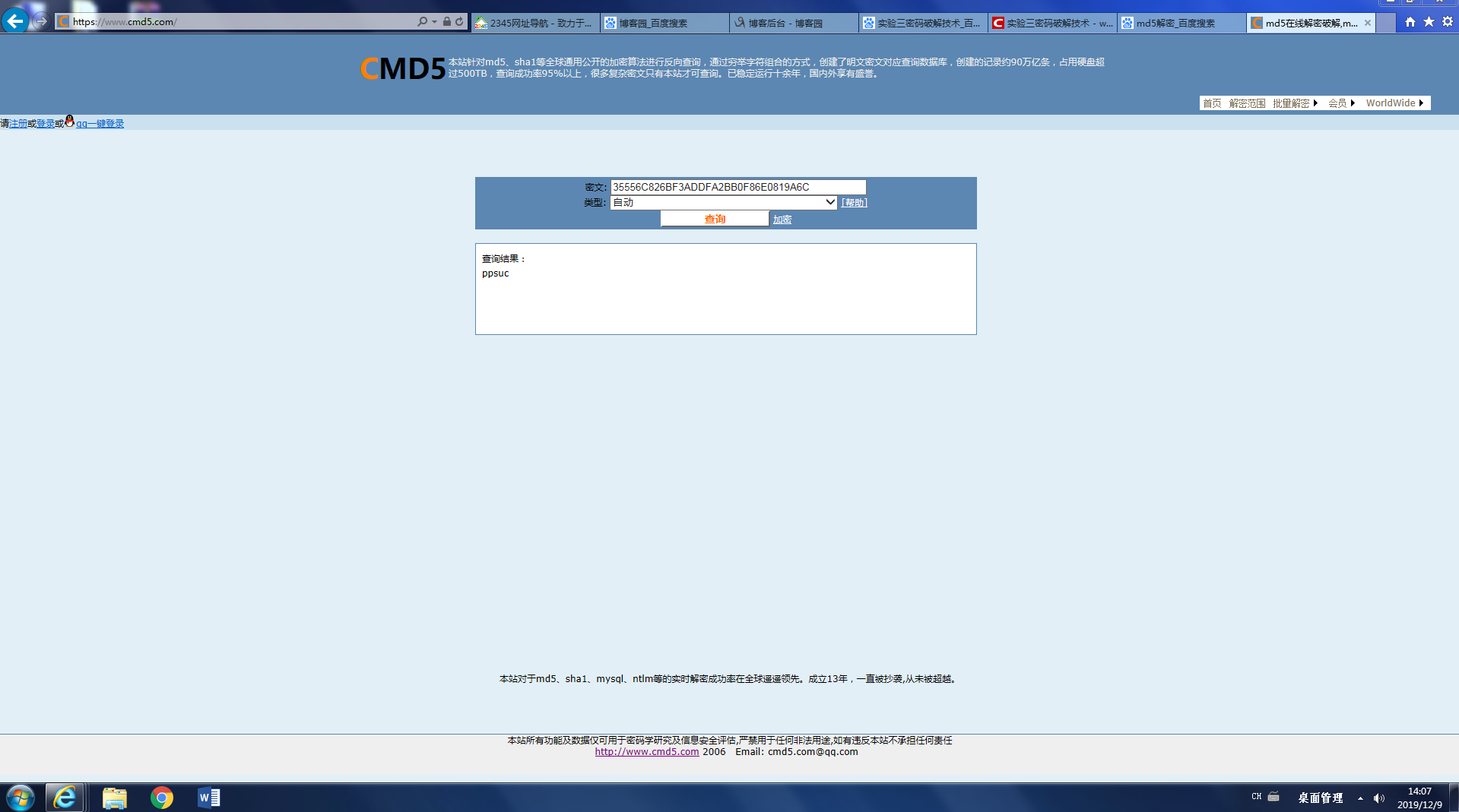 1. 请解密以下字符串35556C826BF3ADDFA2BB0F86E0819A6C。(附截图)
