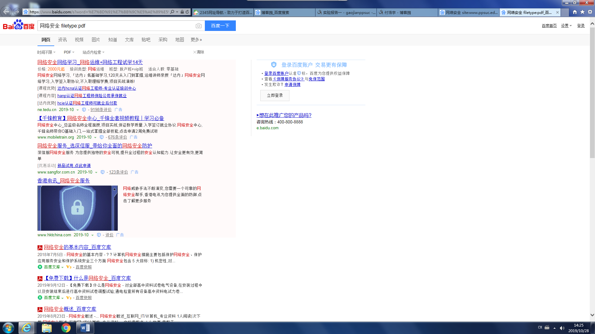 用百度或google搜索所有包含“网络安全”的pdf文档(附截图)