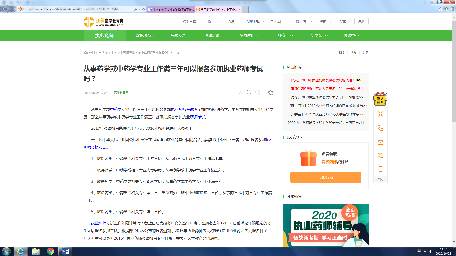 小丽是药学专业的一名本科生,现已从事药学专业的工作,目前她想考取一个资格证,但是报名条件中要求其工作满三年。那么,小丽想考取的是什么证。(请回答并附截图证明。)