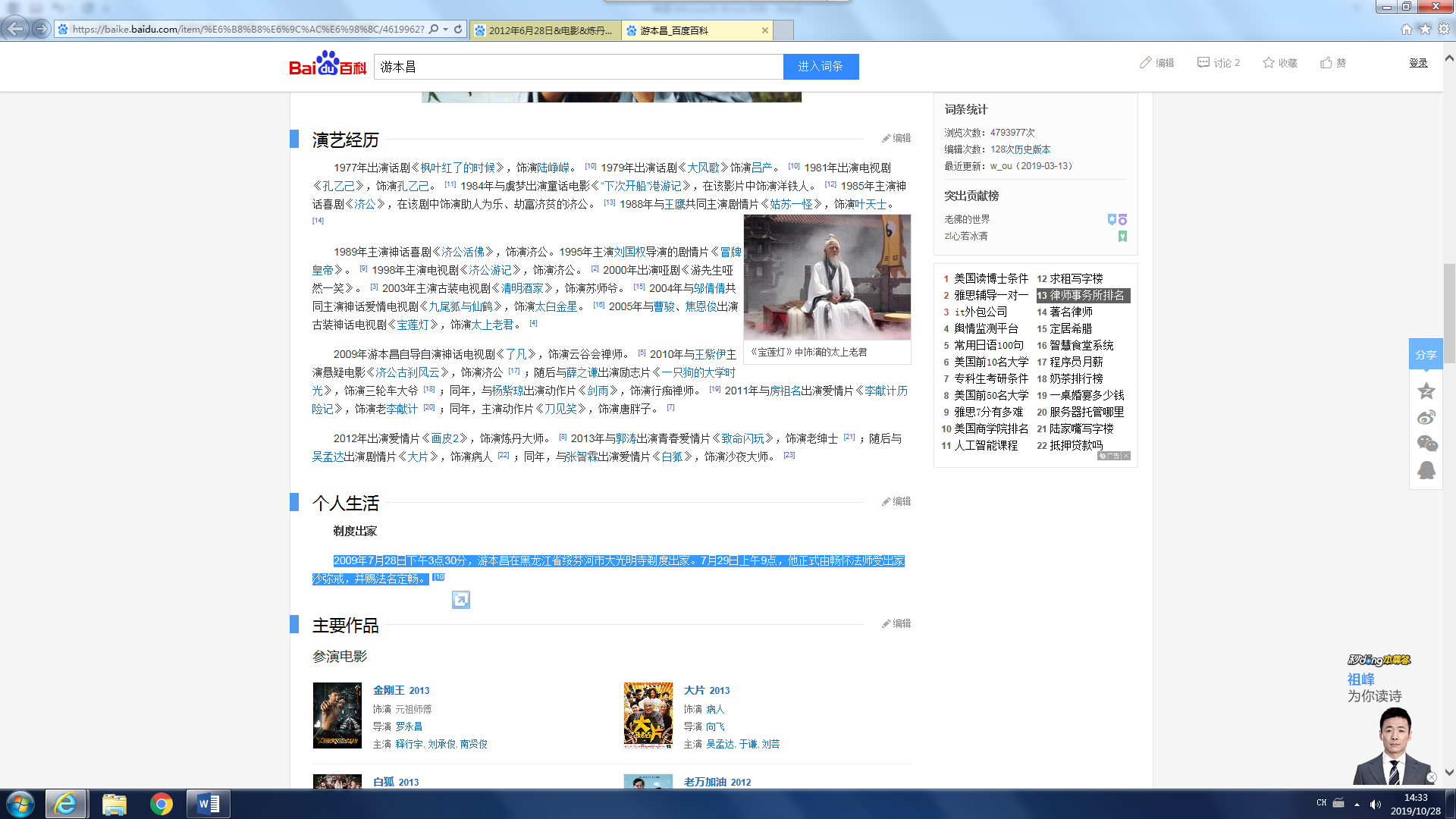 6月28日是小王的生日,他是中国人民公安大学2008年入学的本科生。在大四这年,为了庆祝生日,他和朋友们一起看了一场刚好在生日这天上映的国产玄幻电影。在这场电影中,饰演“炼丹大师”角色的演员曾经出家,请问他当时的法号是什么?(附截图)