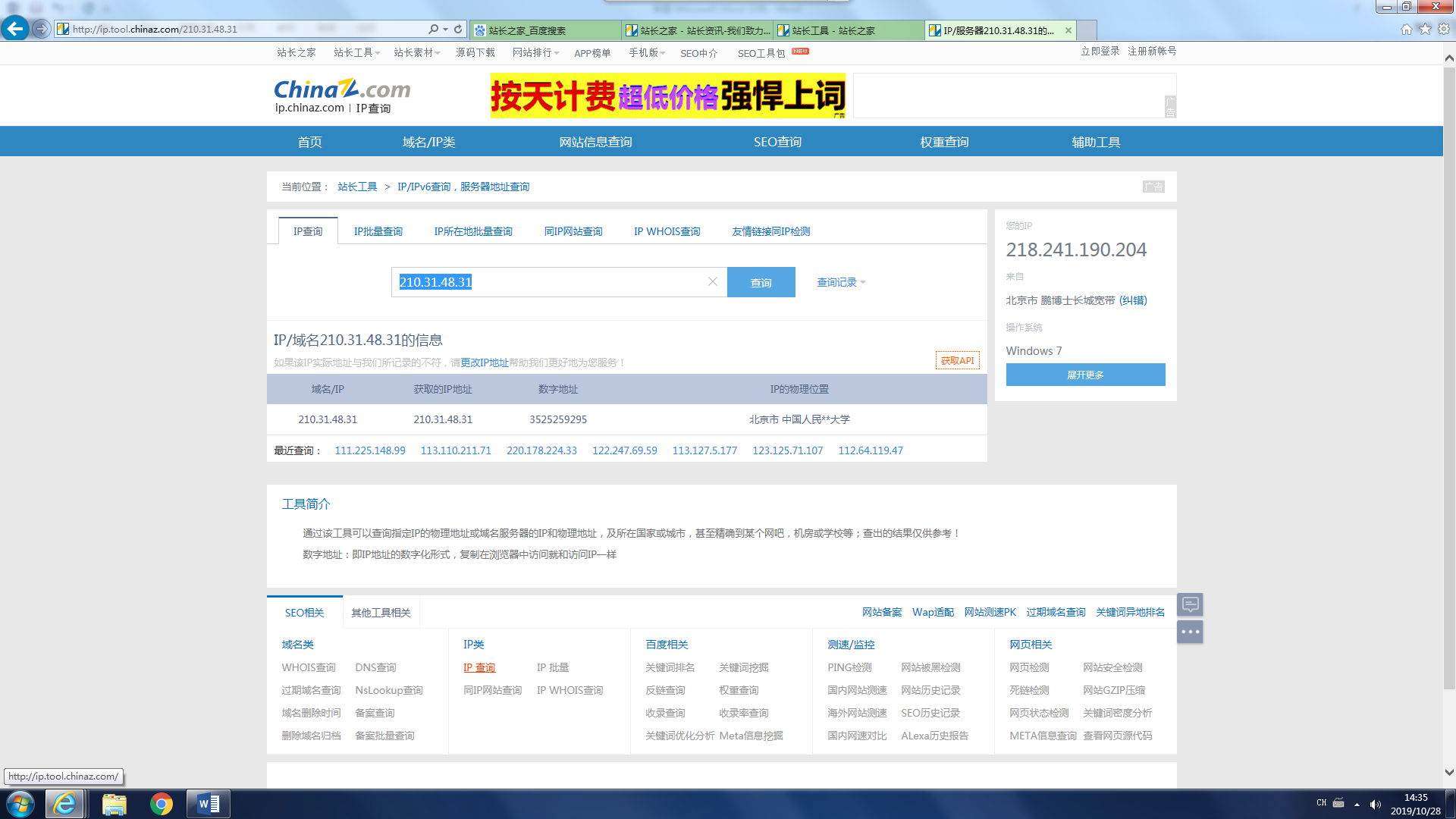 210.31.48.31,该IP地址是属于哪个单位的(附截图)