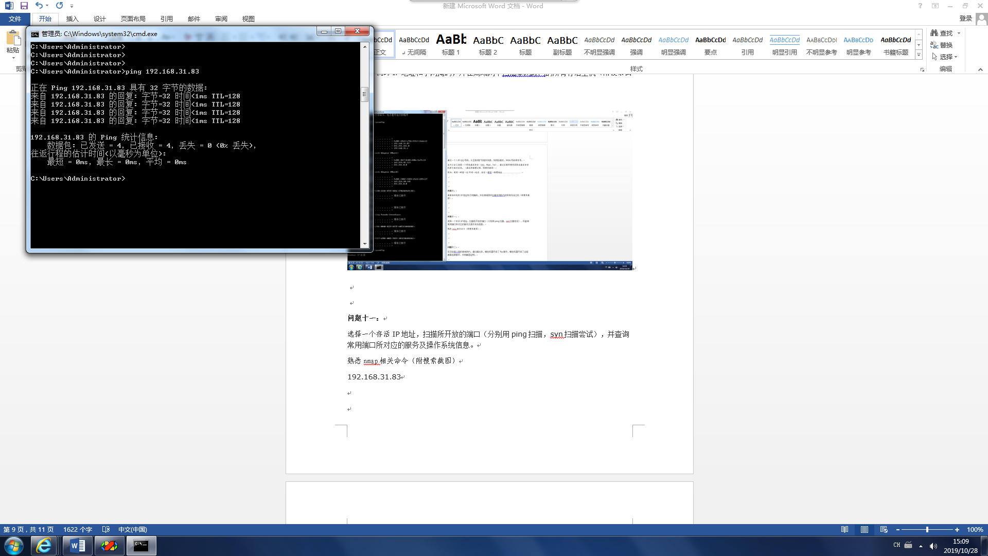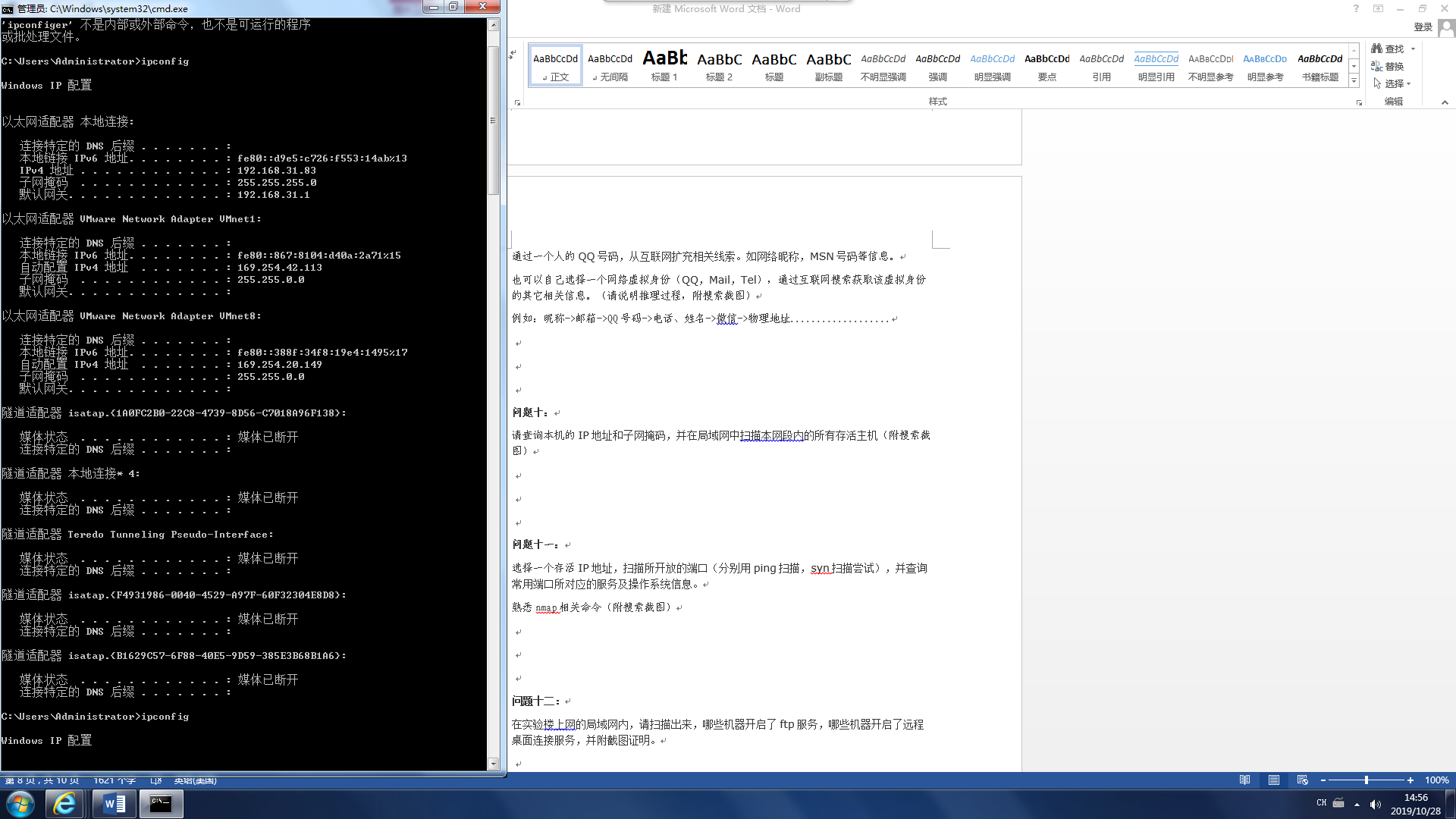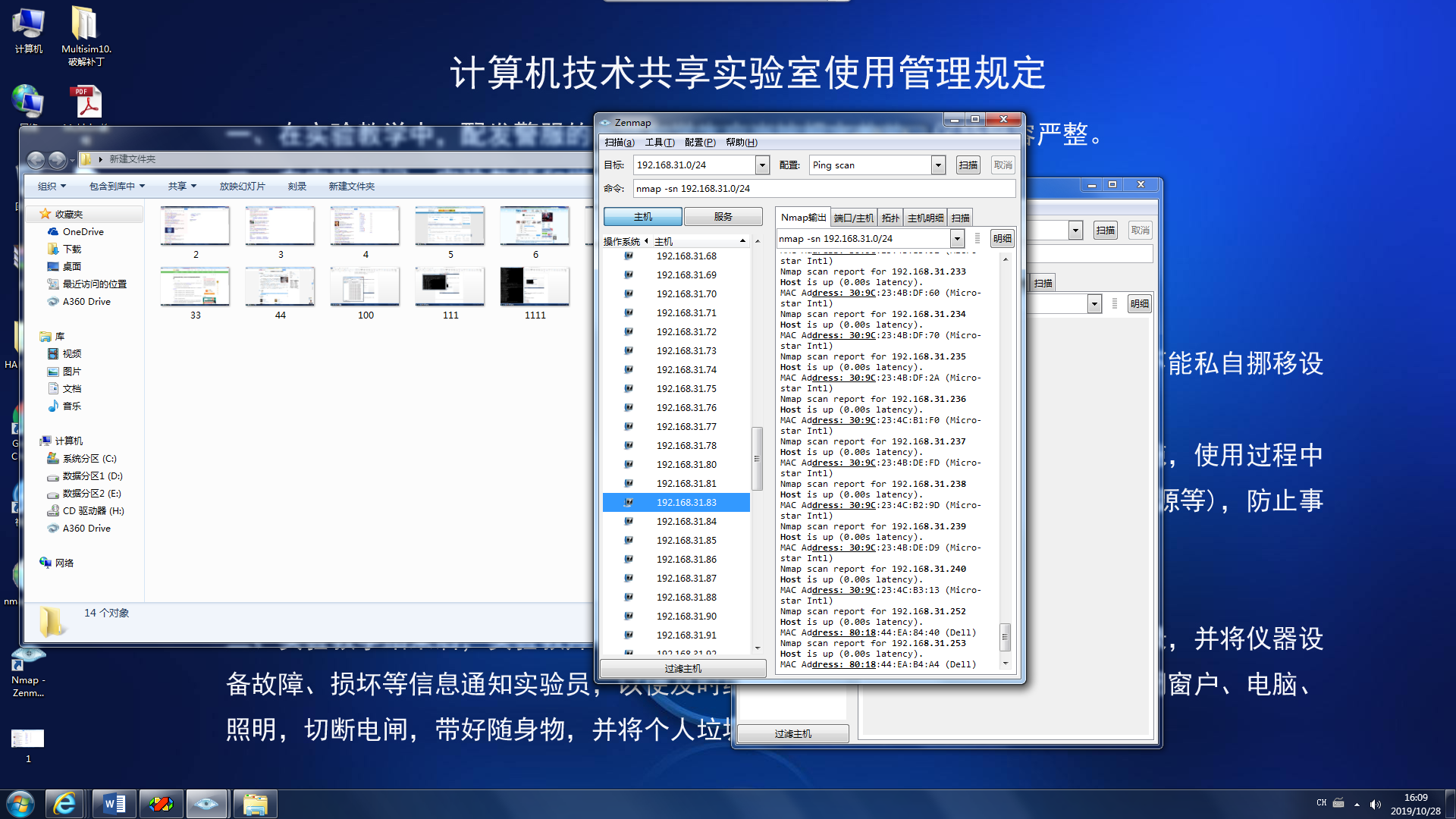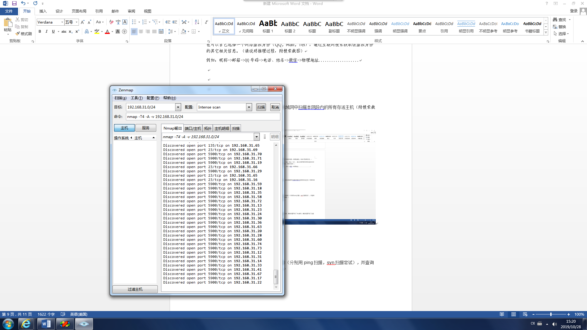 请查询本机的IP地址和子网掩码,并在局域网中扫描本网段内的所有存活主机(附搜索截图)