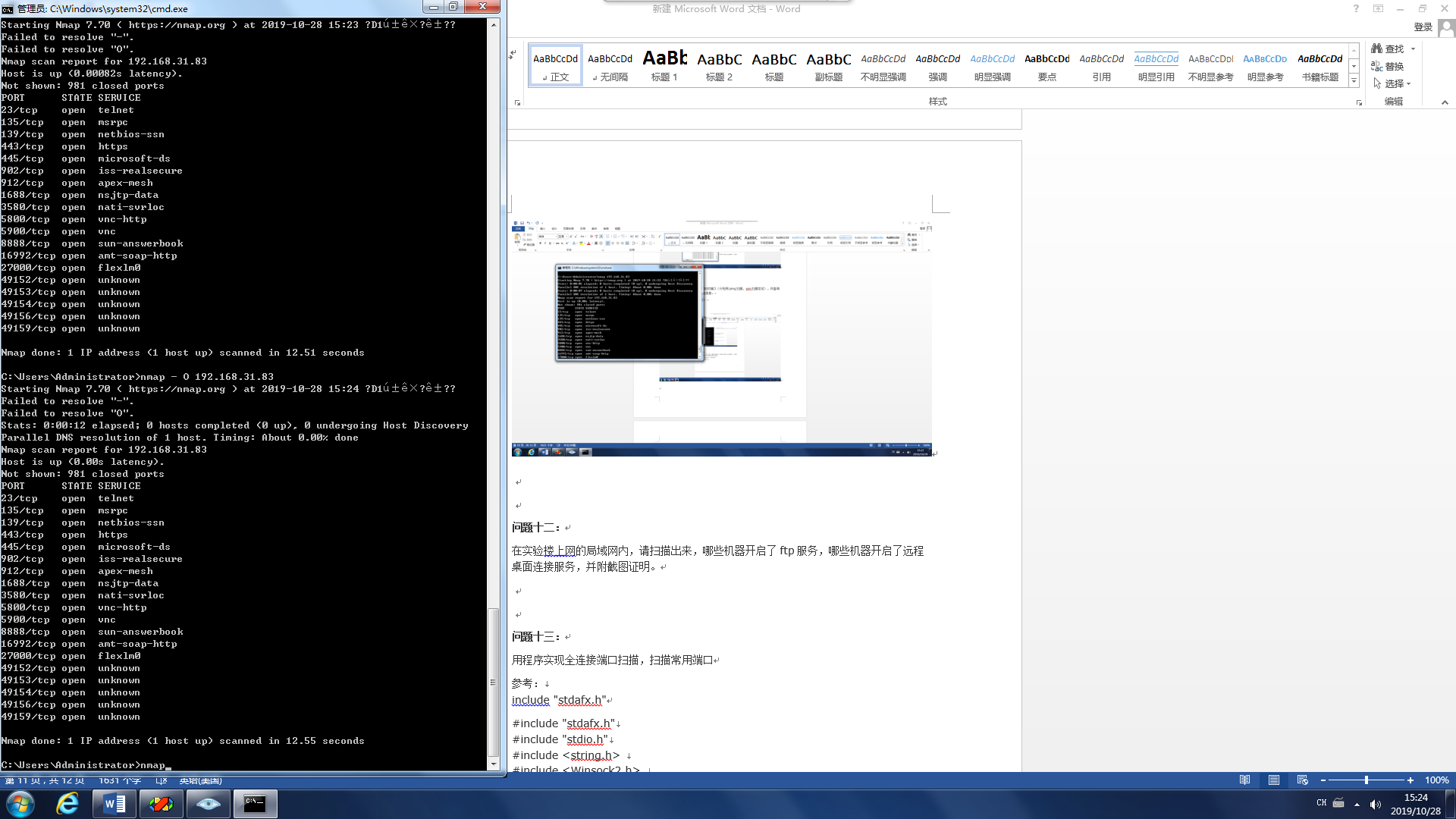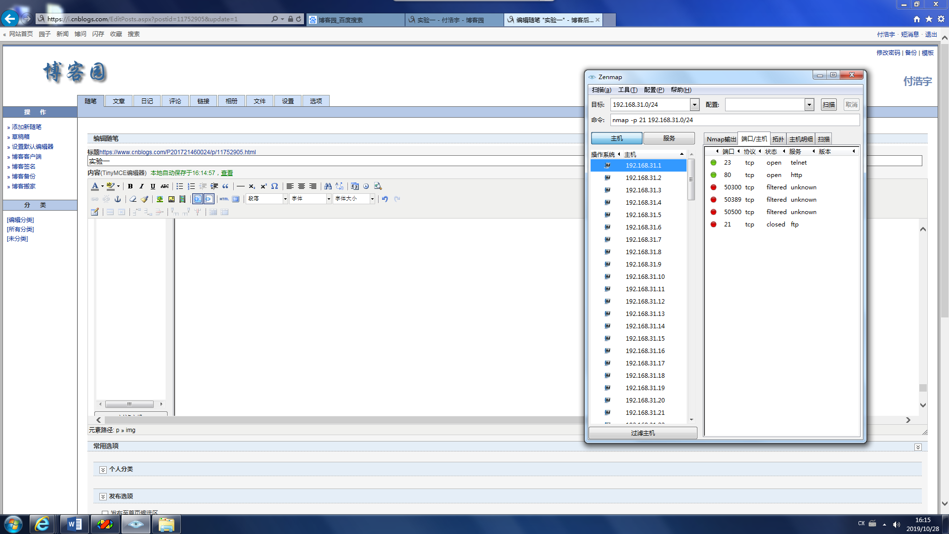 在实验楼上网的局域网内,请扫描出来,哪些机器开启了ftp服务,哪些机器开启了远程桌面连接服务,并附截图证明。