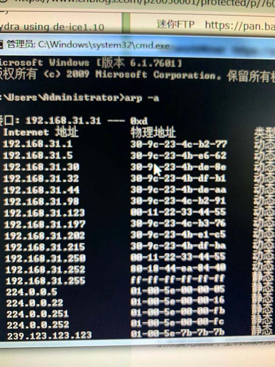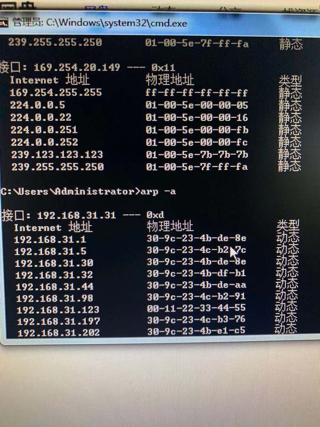 2.欺骗攻击前后,通过Arp-a命令验证欺骗是否成功(附截图)