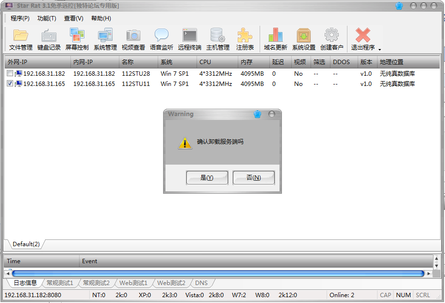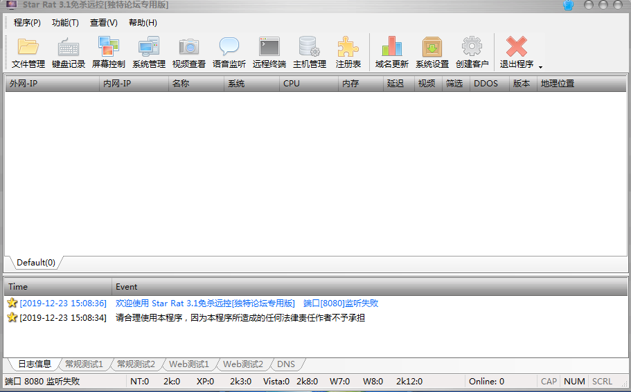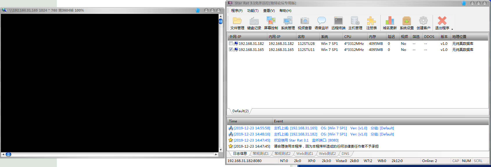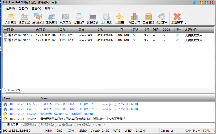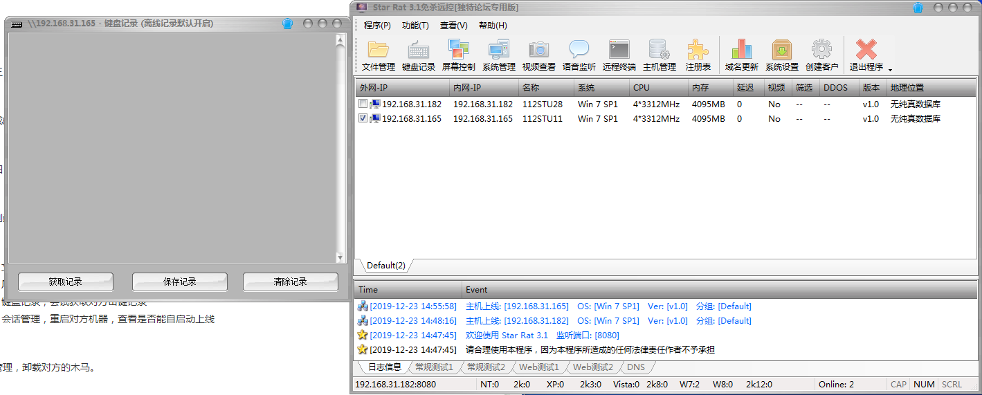 在控制端中查看木马上线情况,并对以下功能每个进行测试和截图。