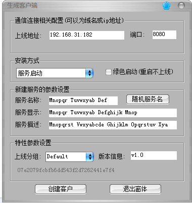 点击菜单栏中的“服务生成”,在弹出的配置服务端中,配置回连IP地址(攻击者IP)和端口号,并点击“生成”按钮,生成木马服务端。