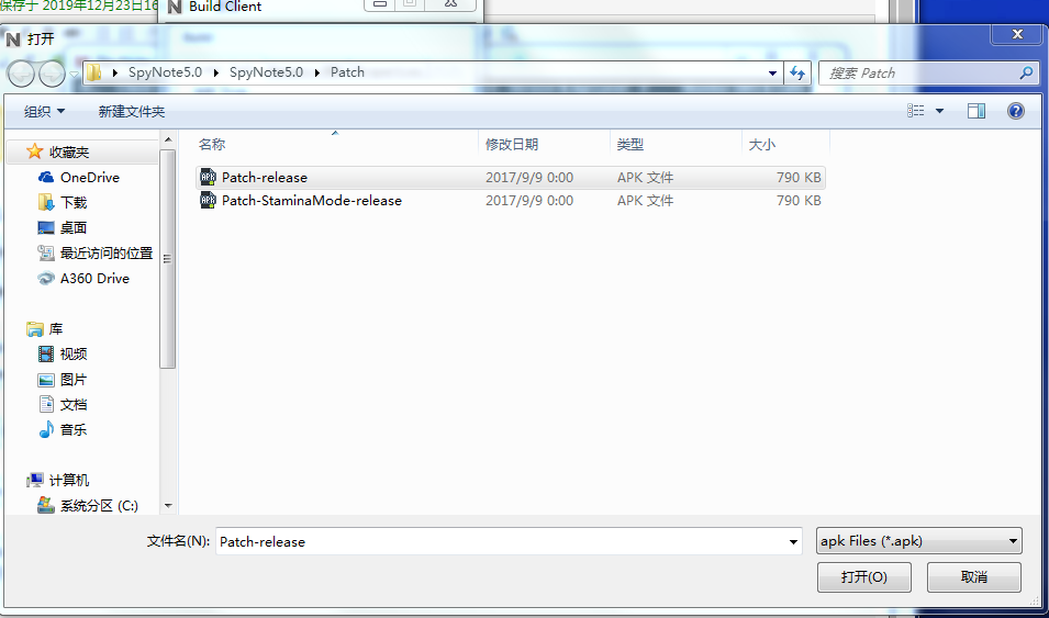 (4)最后点击Build按钮,在选择框中选择和spynote同处在一个文件夹中Patch-release.apk。