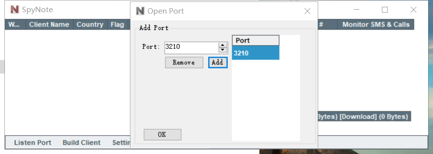点击Listen Port,在弹出的对话框中输入端口号,并点击Add按钮,最后点击OK,成功监听本地端口。【本过程选用3210端口,实验过程大家可以自己选择端口】