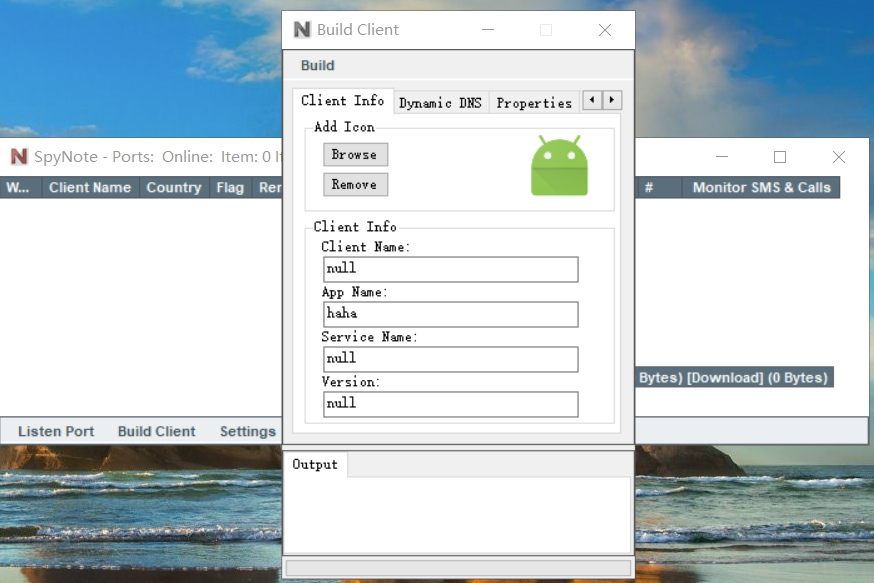一、攻击者打开spynote软件,该软件需要先安装.netframework4.0和jdk环境。