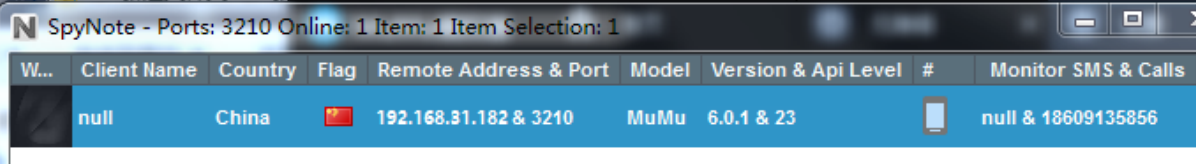 可以在spynote中看到有一台机器上线,并可以查看其基本信息。