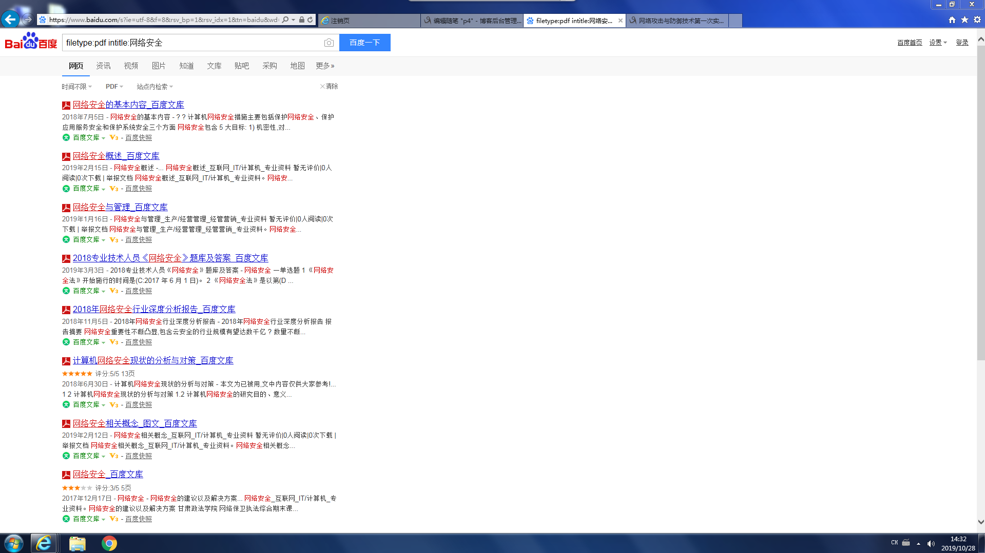 用百度或google搜索所有包含“网络安全”的pdf文档(附截图)