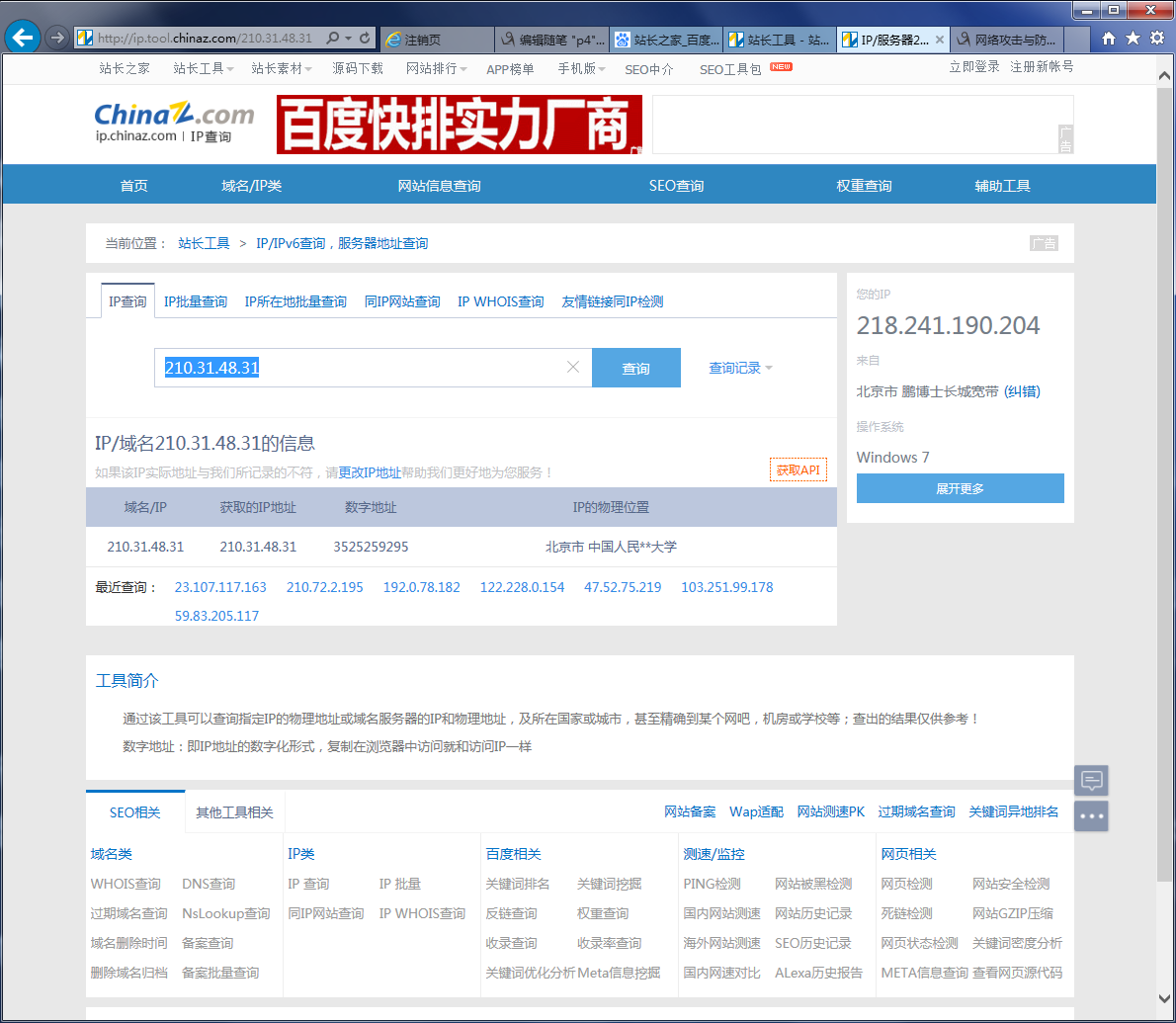 210.31.48.31,该IP地址是属于哪个单位的(附截图)