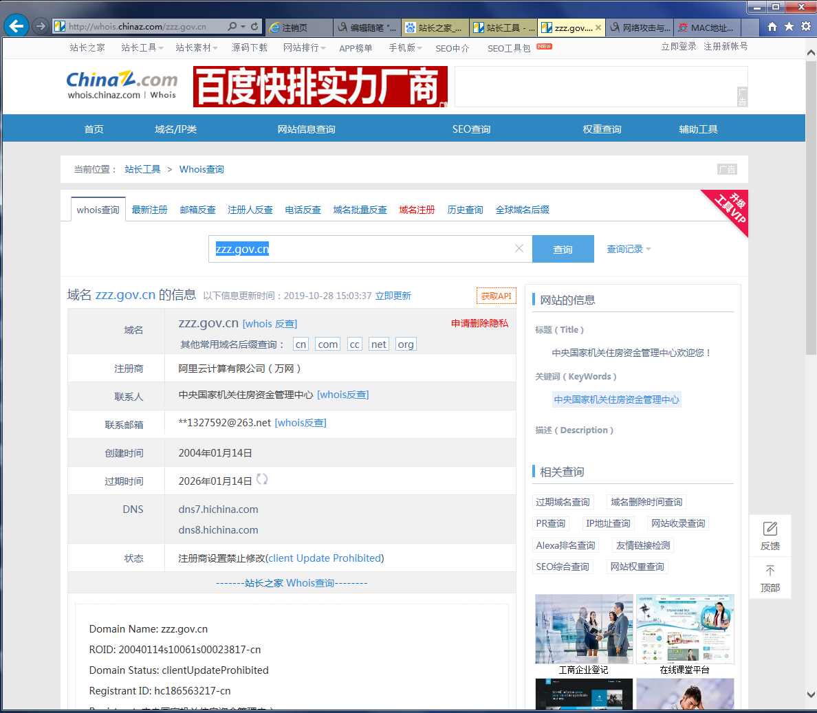 获取www.zzz.gov.cn域名注册时,注册人的邮箱是(附截图)