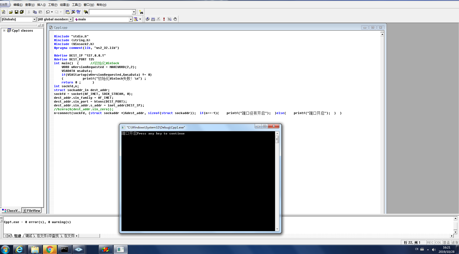 n=connect(sockfd, (struct sockaddr *)&dest_addr, sizeof(struct sockaddr)); if(n==-1){ printf("端口没有开启"); }else{ printf("端口开启"); } }