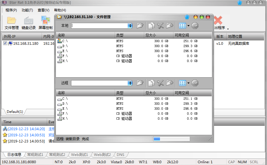 在控制端中查看木马上线情况,并对以下功能每个进行测试和截图。