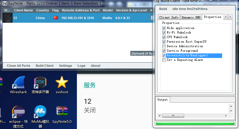 一、攻击者打开spynote软件,该软件需要先安装.netframework4.0和jdk环境。
