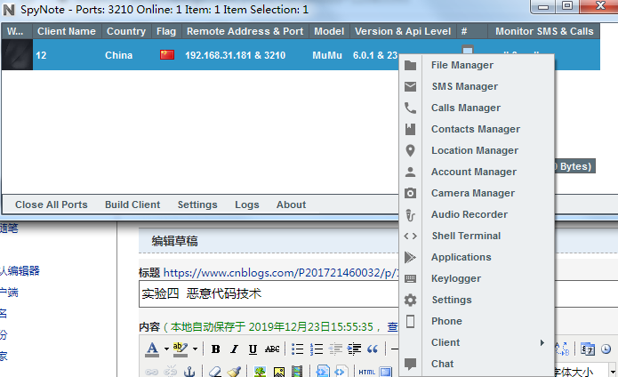 任务三 Android远控实践 所有过程截图写博客