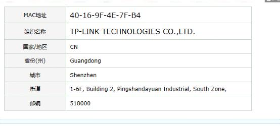 答:从网上mac地址的查询来看,该地址对应的厂商是TP-LINK TECHNOLOGIES CO.,LTD.