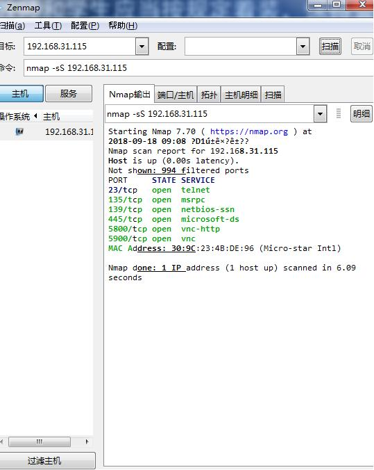 选择一个存活IP地址,扫描所开放的端口(分别用ping扫描,syn扫描尝试和全连接扫描),并查询常用端口所对应的服务及操作系统信息。