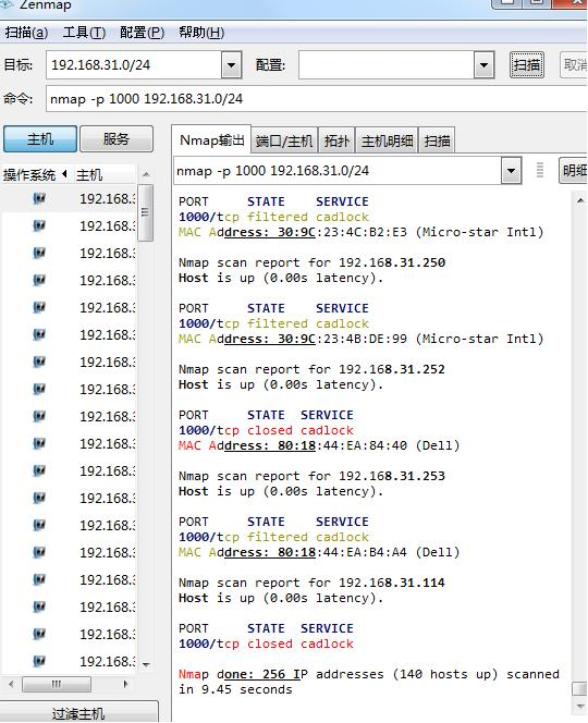 请查询本机的IP地址和子网掩码,并在局域网中扫描本网段内的所有存活主机(附截图)