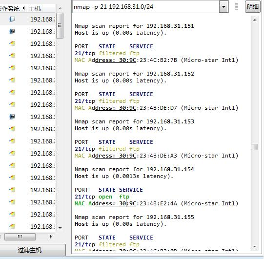 可以看出192.168.31.154打开了ftp服务端口21,所以这台机器上安装了服务器