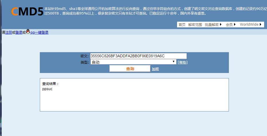 1. 请解密以下字符串35556C826BF3ADDFA2BB0F86E0819A6C。(附截图)