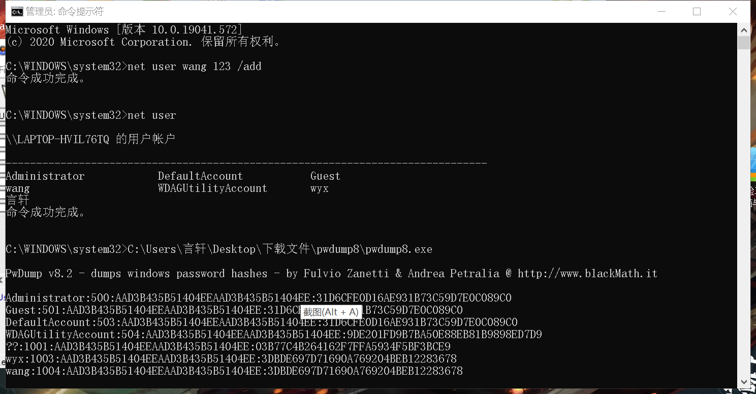 2.使用pwdump软件导出本机的sam文件