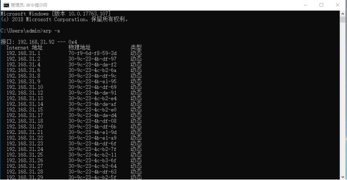 ARP欺骗前192.168.31.92机正常缓存表,其网关地址为192.168.31.1