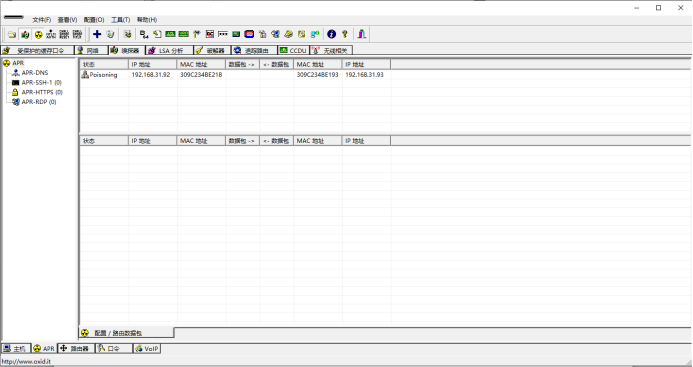 4、点击工具栏第三个图标(start ARP)就可以ARP欺骗了