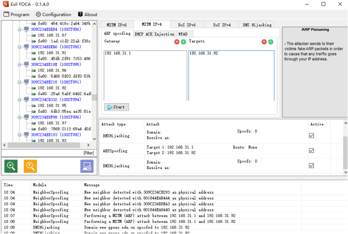 除网关外,扫描到了攻击目标192.168.31.92和192.168.31.93