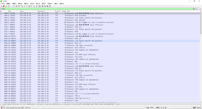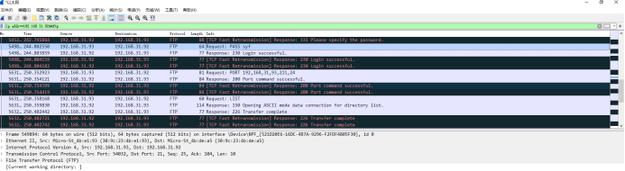4.欺骗过程中,在主机C开启Wireshark进行抓包,分析FTP协议的登录过程(附流程图)