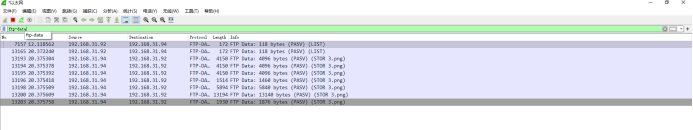 3.B同学在机器中安装Wireshark,并将其打开;之后用用户名和密码登陆A同学的FTP服务器,并上传一张图片和一个压缩包。