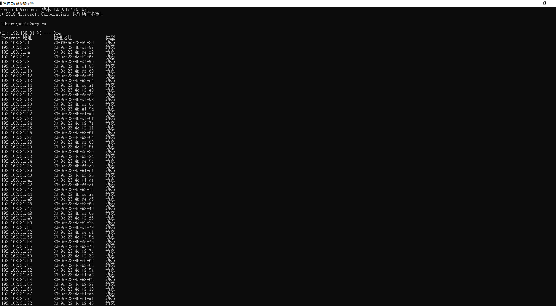 ARP欺骗前192.168.31.93机正常缓存表,其网关地址为192.168.31.1