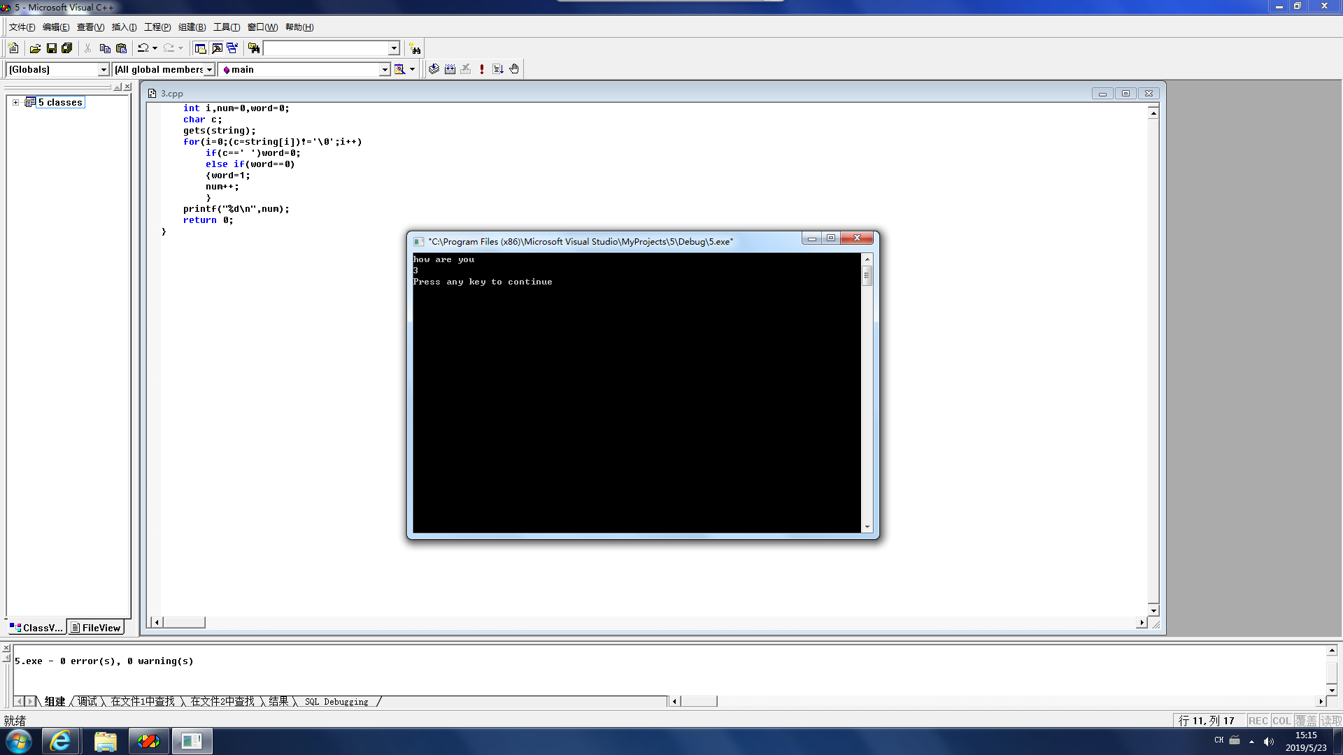int main(int argc, char* argv[]) { char string[100]; int i,num=0,word=0; char c; gets(string); for(i=0;(c=string[i])!='\0';i++) if(c==' ')word=0; else if(word==0) {word=1; num++; } printf("%d\n",num); return 0; }