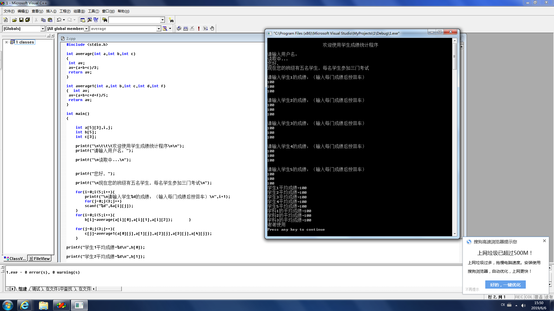 printf("学科1的平均成绩=%d\n",c[0]);