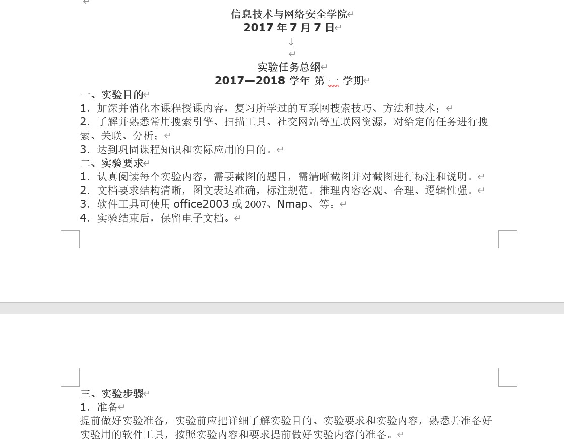 3.软件工具可使用office2003或2007、Nmap、等。