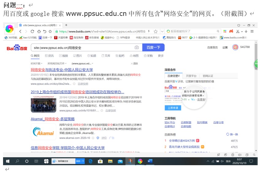 用百度或google搜索www.ppsuc.edu.cn中所有包含“网络安全”的网页。(附截图)