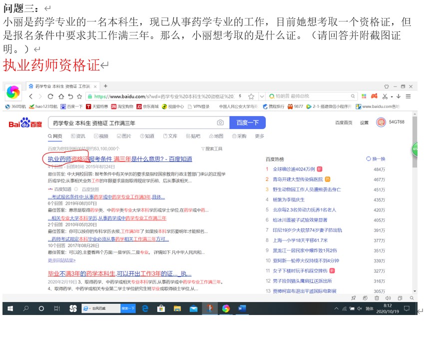 小丽是药学专业的一名本科生,现已从事药学专业的工作,目前她想考取一个资格证,但是报名条件中要求其工作满三年。那么,小丽想考取的是什么证。(请回答并附截图证明。)