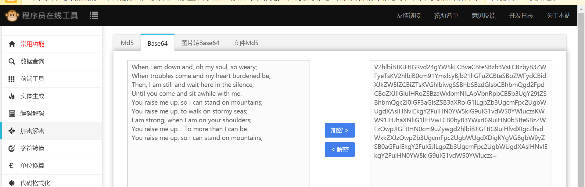V2hlbiBJIGFtIGRvd24gYW5kLCBvaCBteSBzb3VsLCBzbyB3ZWFyeTsKV2hlbiB0cm91YmxlcyBjb21lIGFuZCBteSBoZWFydCBidXJkZW5lZCBiZTsKVGhlbiwgSSBhbSBzdGlsbCBhbmQgd2FpdCBoZXJlIGluIHRoZSBzaWxlbmNlLApVbnRpbCB5b3UgY29tZSBhbmQgc2l0IGF3aGlsZSB3aXRoIG1lLgpZb3UgcmFpc2UgbWUgdXAsIHNvIEkgY2FuIHN0YW5kIG9uIG1vdW50YWluczsKWW91IHJhaXNlIG1lIHVwLCB0byB3YWxrIG9uIHN0b3JteSBzZWFzOwpJIGFtIHN0cm9uZywgd2hlbiBJIGFtIG9uIHlvdXIgc2hvdWxkZXJzOwpZb3UgcmFpc2UgbWUgdXDigKYgVG8gbW9yZSB0aGFuIEkgY2FuIGJlLgpZb3UgcmFpc2UgbWUgdXAsIHNvIEkgY2FuIHN0YW5kIG9uIG1vdW50YWluczs=