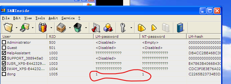 3.使用saminside软件将sam.txt导入,并进行破解,注意配置字典破解和暴力破解