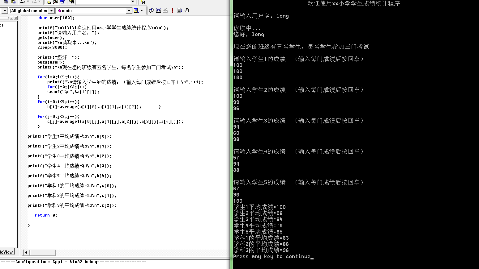 printf("\n现在您的班级有五名学生,每名学生参加三门考试\n");