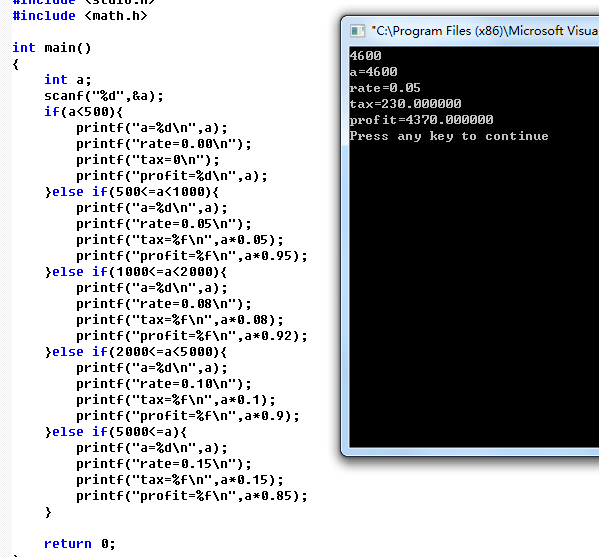 printf("tax=%f\n",a*0.05);
