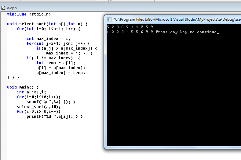 void select_sort(int a[],int n) { for(int i=0; i<n-1; i++) {