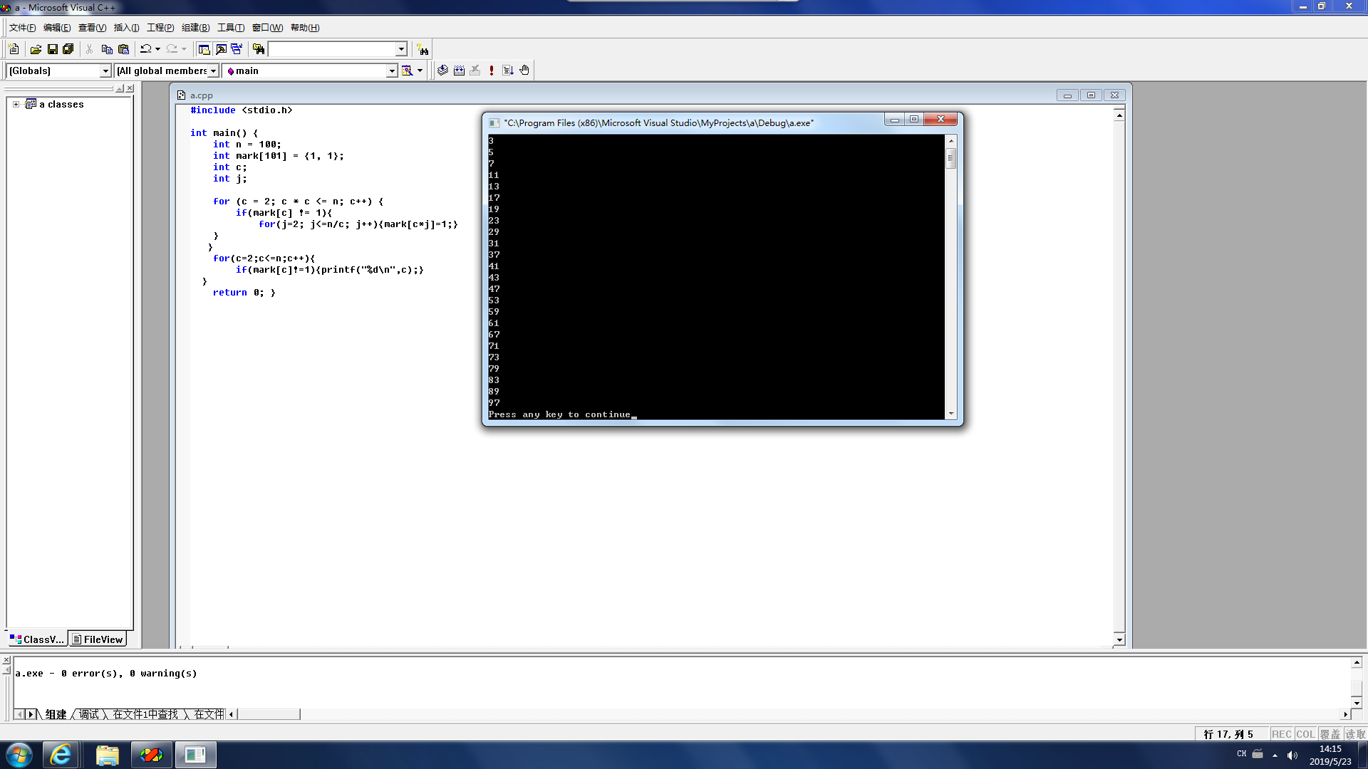 for (c = 2; c * c <= n; c++) {