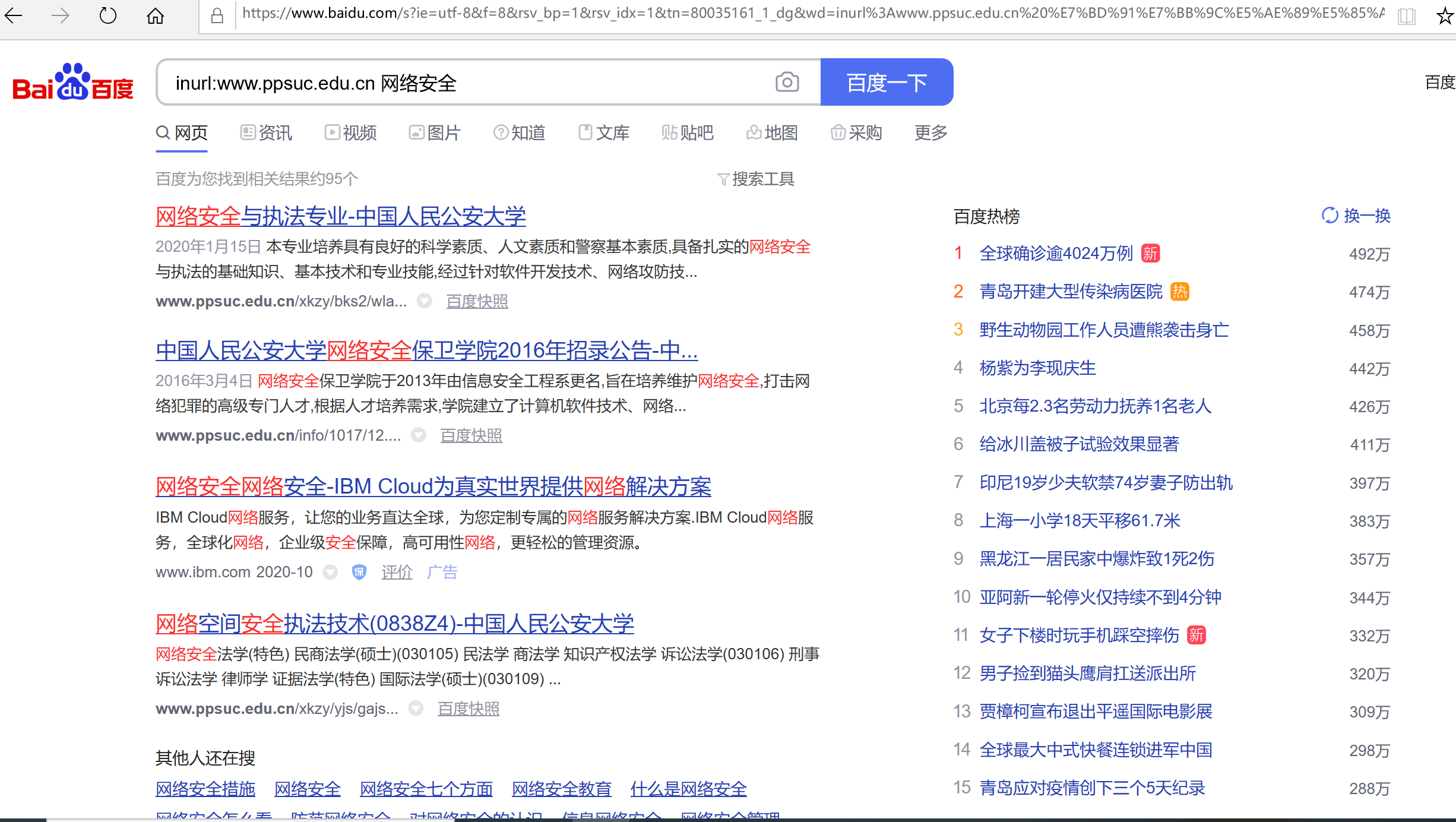 用百度或google搜索www.ppsuc.edu.cn中所有包含“网络安全”的网页。(附截图)